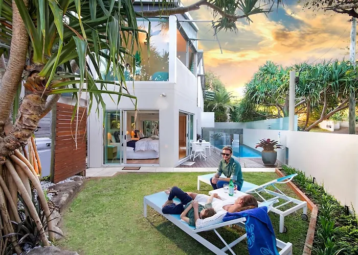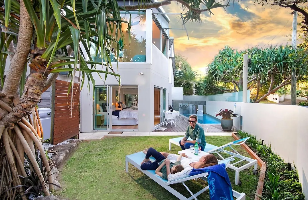 Situada a 2 km de las Puertas del Infierno, la villa The Boat House Luxury Beachside With Heated Pool Sunshine Beach invita a los huéspedes a relajarse en una terraza-solárium.